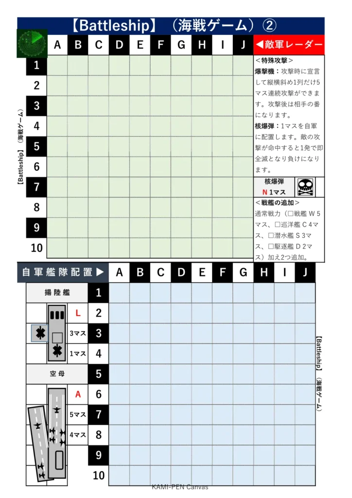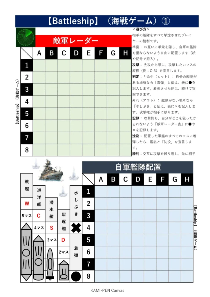 おすすめ!紙ペンゲーム【Battleship】(海戦ゲーム)無料テンプレート|親子で遊べる戦略知育
