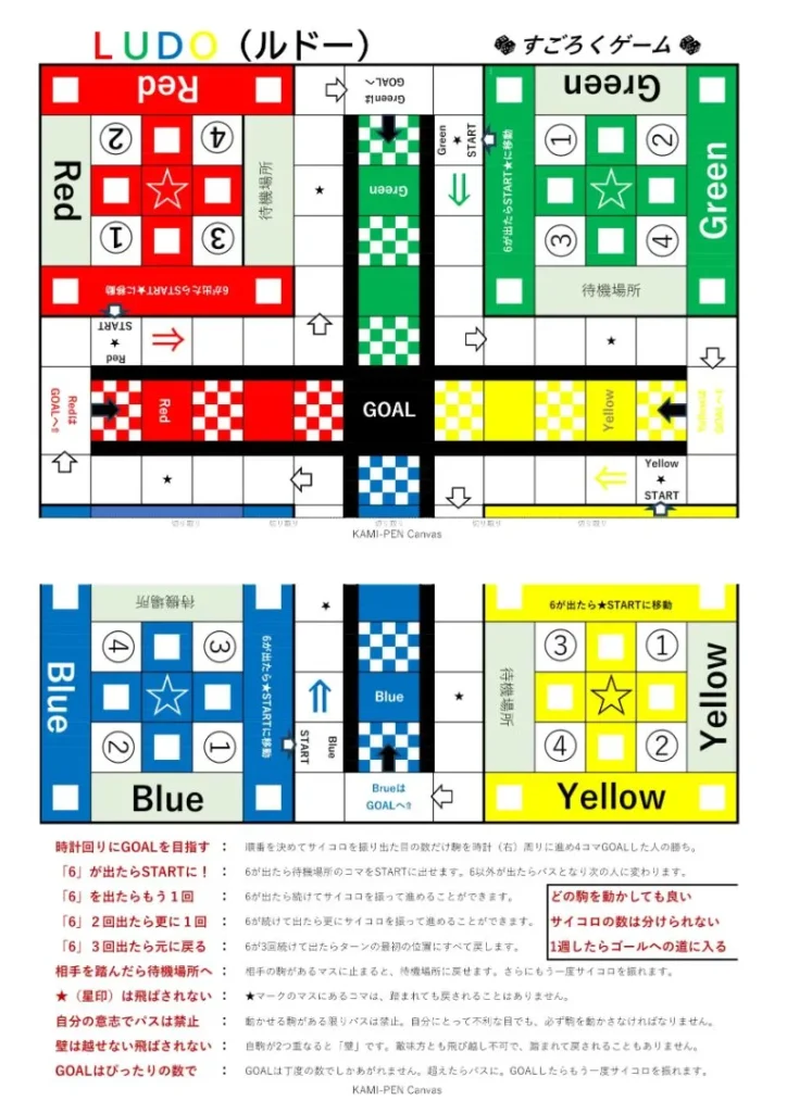 おすすめ!紙ペンゲーム【Ludo】(ルドー)無料テンプレート|KAMI-PEN Canvas